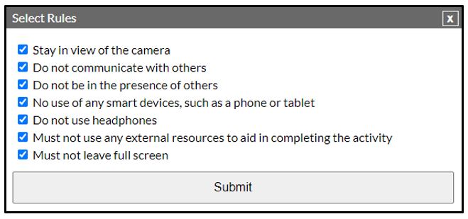 IMPORTANT: Due to the costs and licensing models of these systems, Integrity Advocate is for use with high-stakes exams being administered off-campus. It is not a system to be used for supervised on-campus testing, small quizzes, or other low-risk or open-resource assessments.