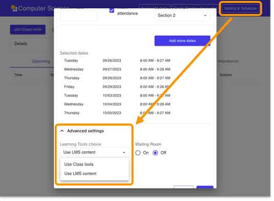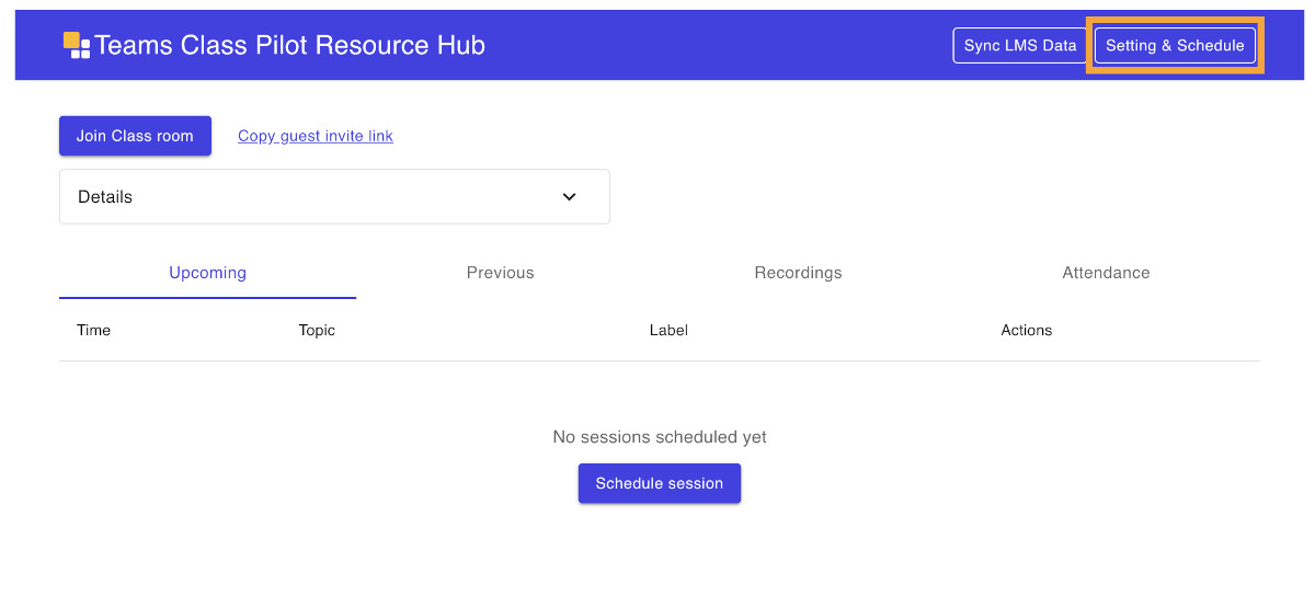 2. Click on Settings & Schedule (or Schedule Session if you have created Class sessions yet)