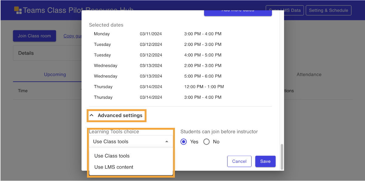 3. Go to Advanced Settings and locate Learning Tools Choice