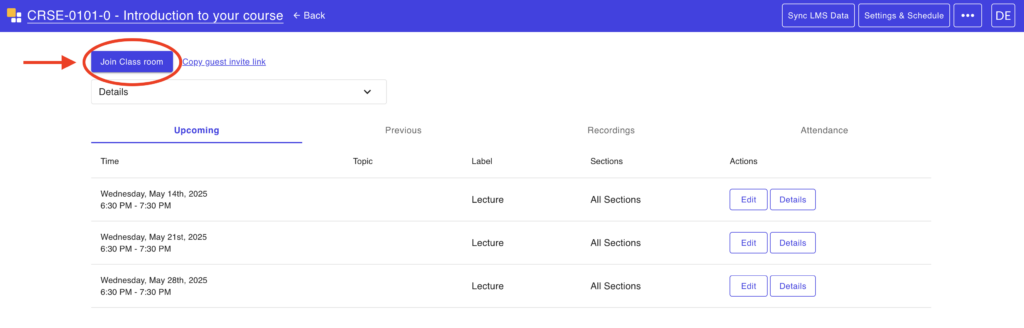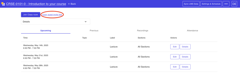 Important: Ask your guests not to share this link, as it grants full instructor or student access to anyone who uses it.