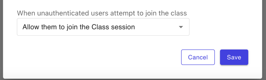 Under Advanced, locate the dropdown labeled When unauthenticated users attempt to join the class.