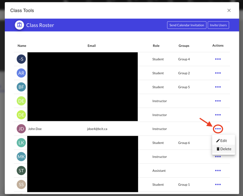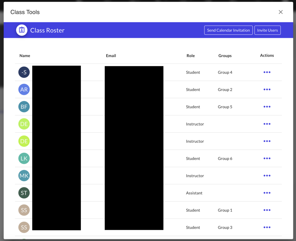 You will now see a list of all students and instructors in the Class for Teams classroom.