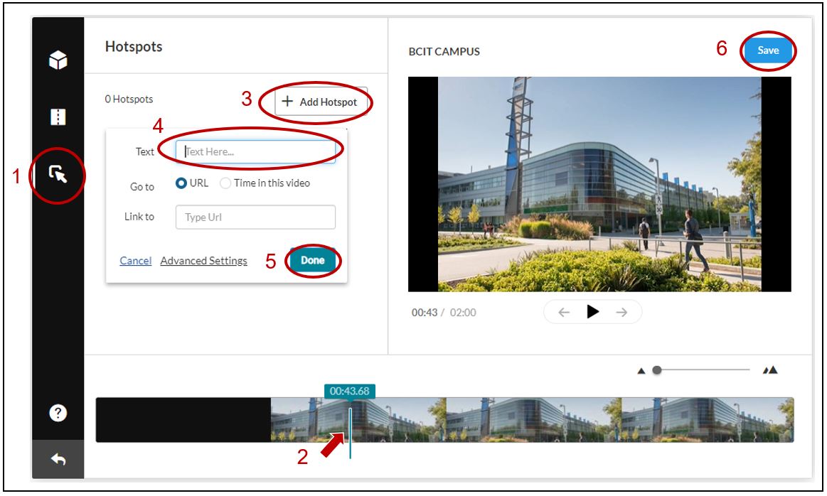 Creating hotspots on your video is the primary way to add interactivity to your project. Hotspots are contained in the interactive layer of the Kaltura player and are primarily used to trigger new videos and URL link-outs.