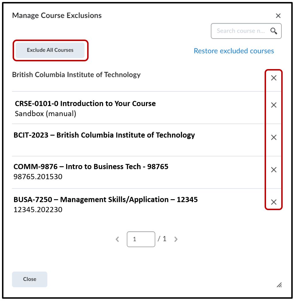 Select the Exclude All Courses option or click on the ‘x‘ to choose which course to exclude