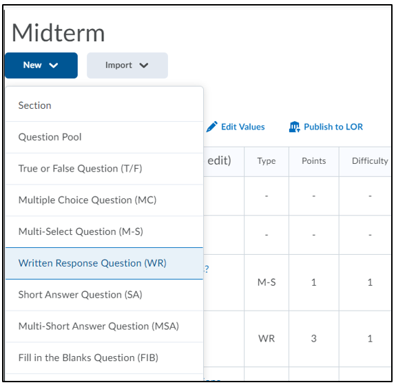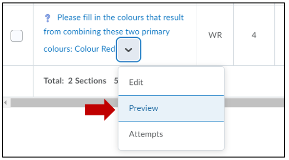 7. Click the dropdown arrow beside the new question and then click “Preview” to view the quiz question to make sure it looks the way you want it too.