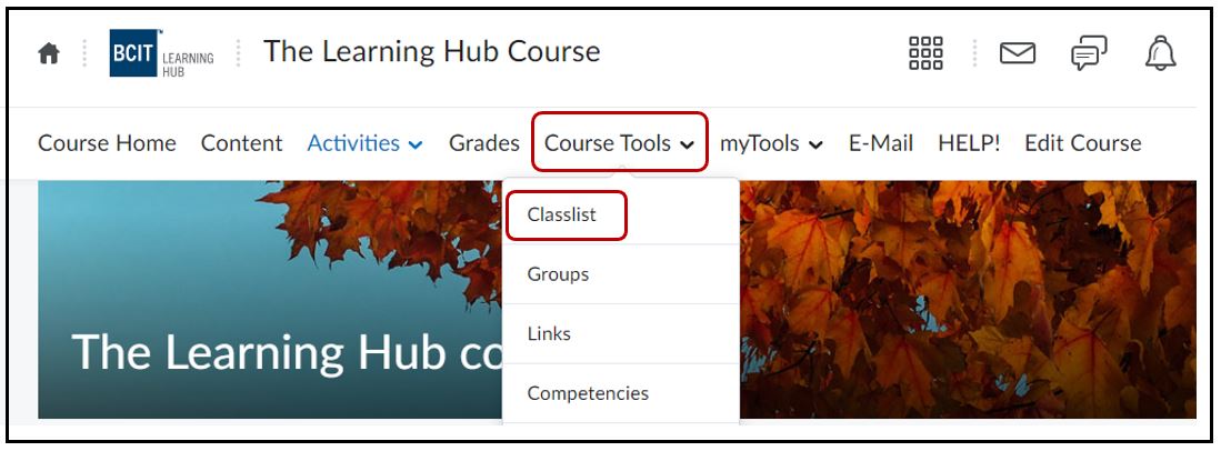 Select Course Tools > Classlist from the Navbar of the course.