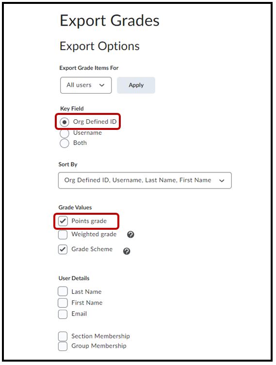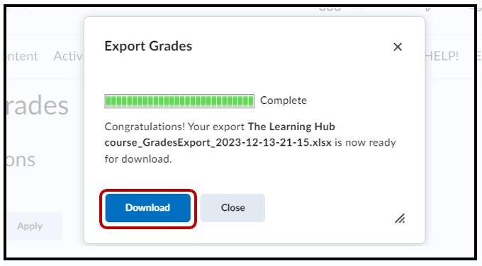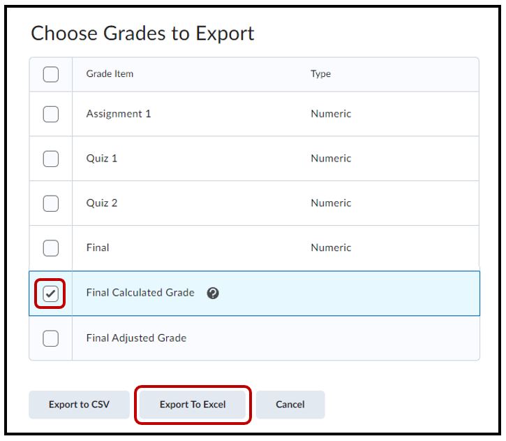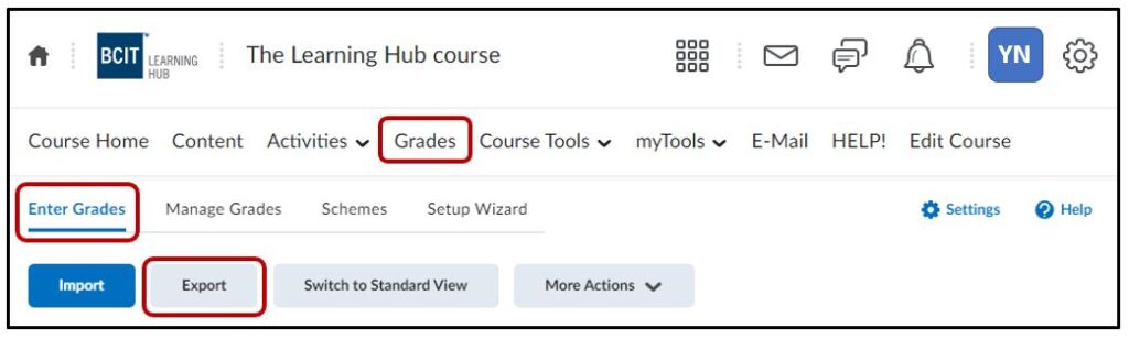 If you haven’t used the Learning Hub ‘Grades’ tool for tracking/calculating grades then this option will not work for you. If you are interested in utilizing the ‘Grades’ tool in Learning Hub – contact ETS Support.