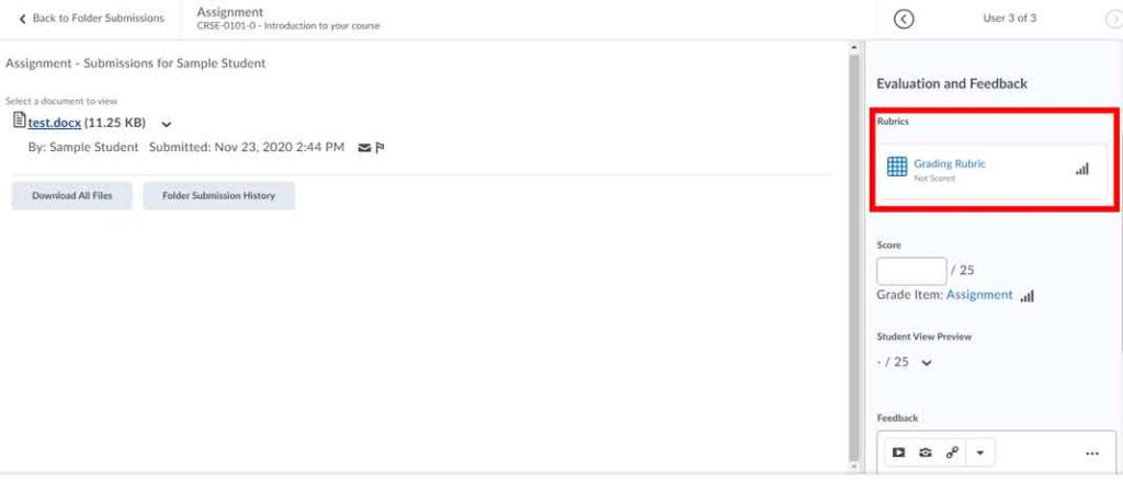If you have attached a rubric to your assignment then you will see it on the right hand under the Evaluation and Feedback header.