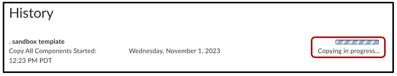 System will copy all items from the template. A Copying in progress message will appear