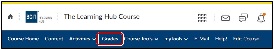 Select Grades from the course navigation bar. You can view your grades (if any are available).