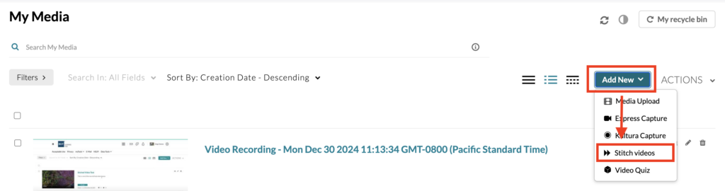 Would you like to combine multiple videos and images into one video? It’s very easy with Kaltura’s Media Stitching tool. This tool allows you to easily create new, original videos by stitching together existing content.