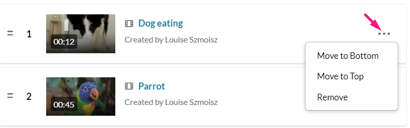 You can also click the 3 dotsnext to an item to open a menu. You can move the item to the top or bottom of the list, or remove the item.