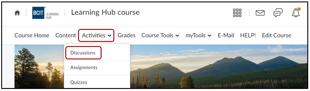 To locate the Discussions tool, open a course > select Activities > Discussions