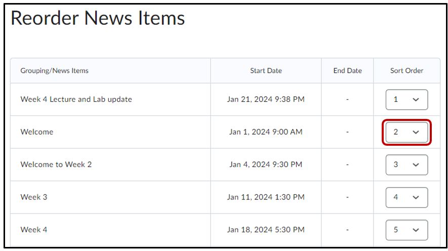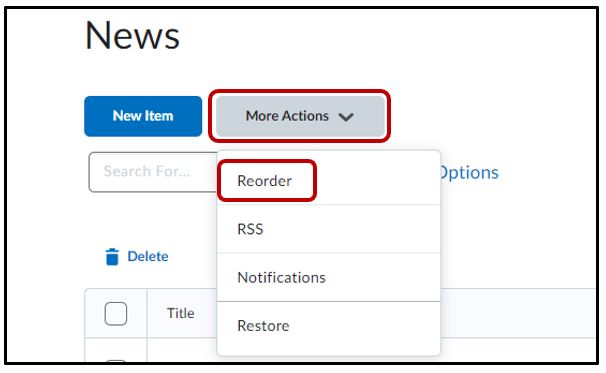 Reorder your existing News items regardless of the publish date. Select the drop down besides News > Go to News Tool
