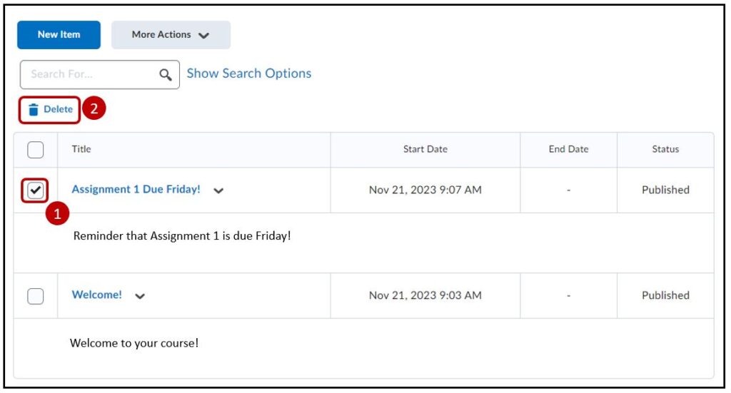 The News tool is a central location for welcome messages, deadline reminders, weekly task reminders, or course updates. Here you can insert text, multimedia or links for everyone in your classlist to see