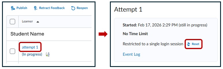 Locate the student > select Attempt 1 > Reset