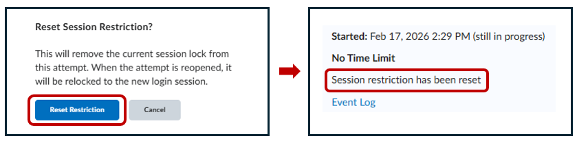 If a student is logged out during a quiz attempt, they won’t be able to resume until you reset the session restriction for that attempt.
