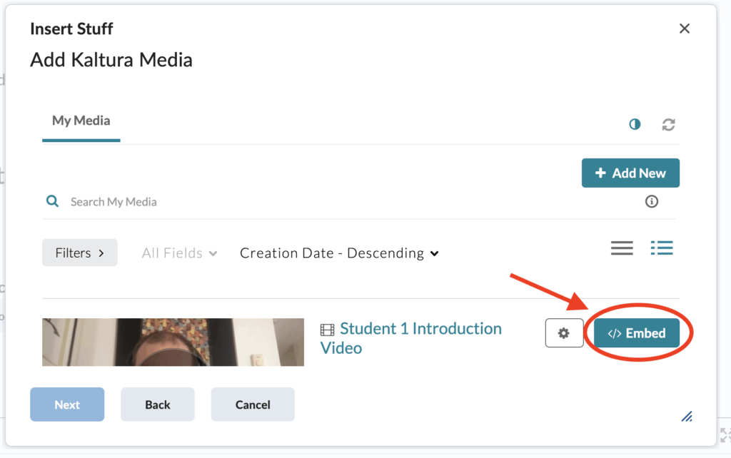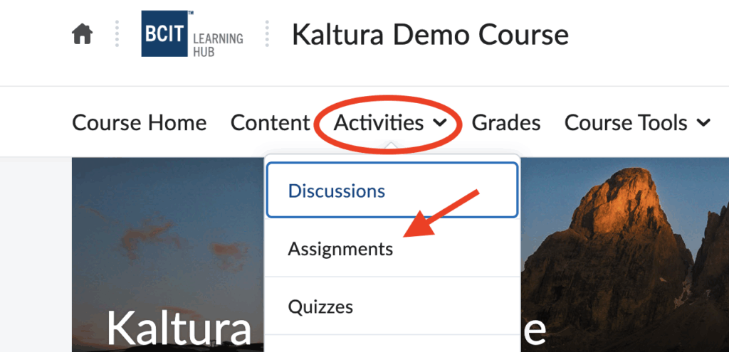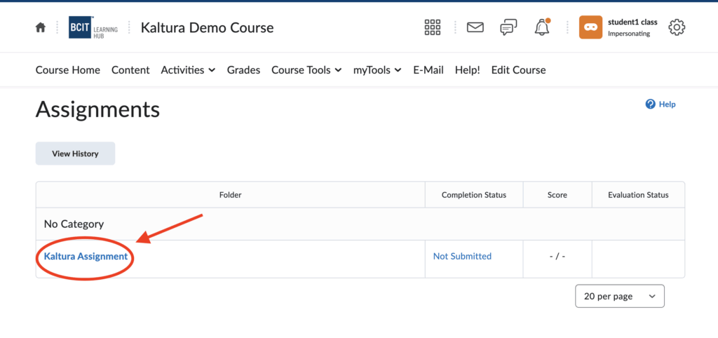Students submitting Kaltura videos into their Learning Hub assignments should follow these steps: