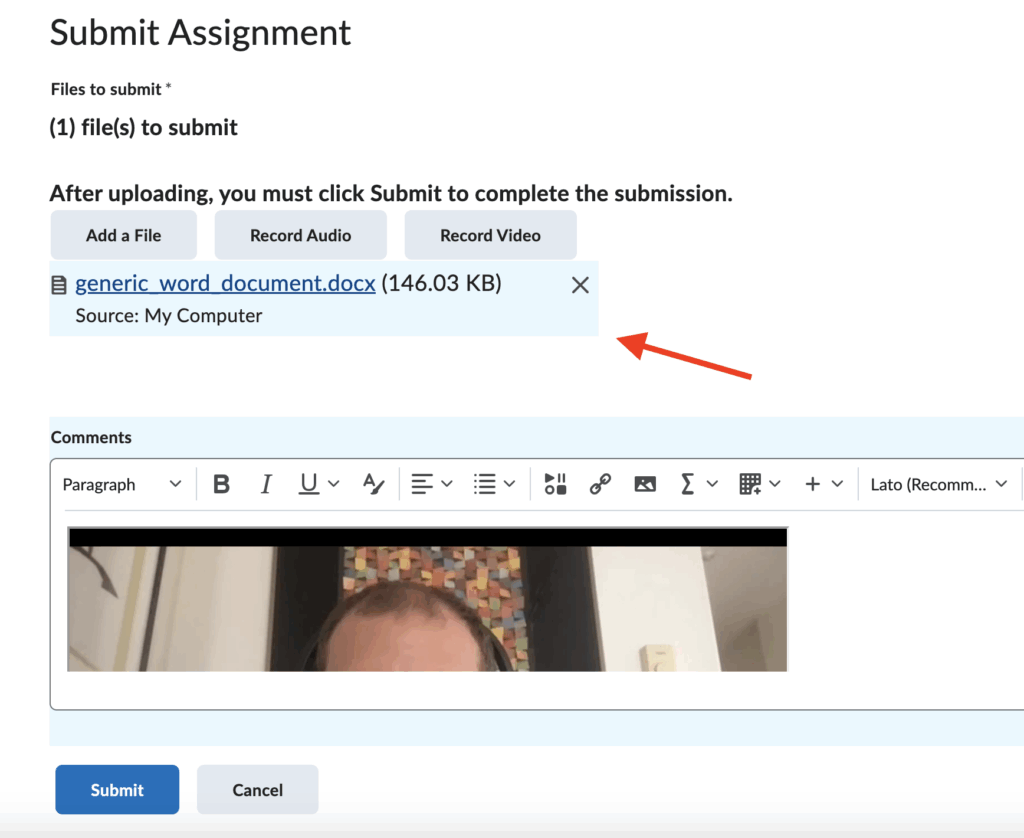 9. Before clicking “Submit” you must add a generic text file or word document. If you do not, you will get an error.